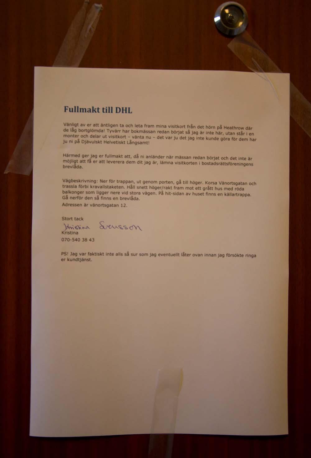 Dagen började illa. Vaknade 05 och inledde med att jaga visitkort från DHL. Ska inte skriva allt jag har lust att säga om det för det är bokmässa idag också. Men hyr in en logistik- och en kunservicekonsult hörni!