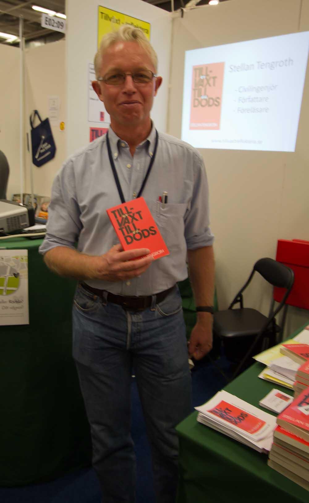 Ett av nöjena med bokmässan är att träffa folk man tidigare bara mejlat, läst eller twittrat med. Här Stellan Tengroth. Han delade monter med två personer, bra knep för att kunna bemanna monter hela bokmässan och dela på kostnaderna. Jag passade så klart på och köpte Stellans bok. Han köpte också min!