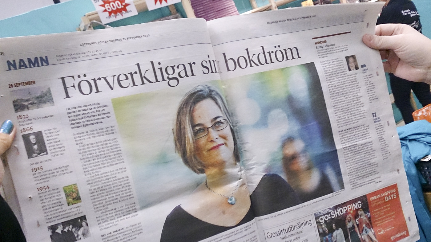 2013 deltog jag i Bokmässan som ordförande i föreningen Egenutgivarna. Jag hade ingen egen ny bok det året vilket kändes trist, men Förverkliga din bokdröm fanns bland annat i Tidningen Skrivas monter. Jag hade överlämnat projektledandet av medlemsmontern, men hjälpte till att sätta upp och riva den. Jag pratade om egenutgivning, representerade föreningen samt svarade på hejarop från personer som sett mig i ett stort uppslag i Göteborgs-Posten. Istället för att snegla på de stora montrarna och vilka fester andra författare eventuellt var bjudna till, fokuserade jag på min bubbla med medlemmar i föreningen jag lagt så mycket tid på att bygga upp.