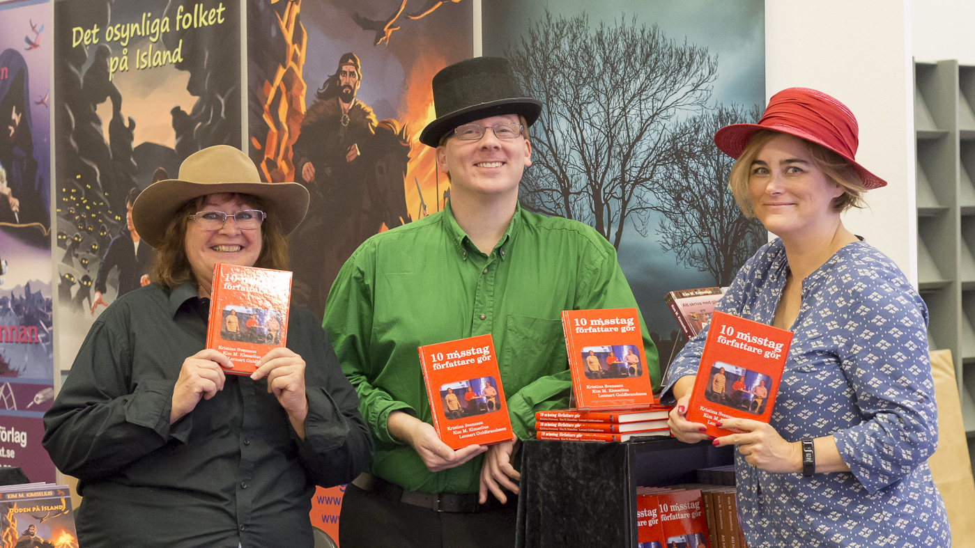 2016 bestämde jag mig för att undvika den sedvanliga post-bokmässe-förkylningen som är ett obligatoriskt inslag om man tillbringar för mycket tid på det luftbefriade utställningsgolvet. Istället skulle jag förkovra mig via seminarieprogrammet. Jag ignorerade alla politiska manifestationer, var bara på plats delar av mässtiden och spenderade större delen av den tiden i speaker’s lounge med att prata med kollegor. Vid de tillfällen jag passerade mässgolvet mötte jag alltid folk jag kände och blev även idolfotograferad – något som kändes stort för mig, på fem mässor har jag tagit mig från storögd nybörjare till någon som andra ser upp till. Seminarierna däremot kom jag aldrig till, förutom det jag höll med Kim M Kimselius och Lennart Guldbrandsson. Seminariet hade samma titel som vår bok, 10 misstag författare gör.