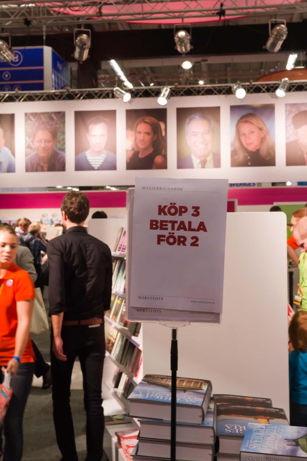 Jag hade läst i förväg att sista timmen på söndagen skulle det gå göra fynd. Så värst många sista-minuten-erbjudanden hittade jag inte men Nordstedts hade i alla fall köp 3 betala för 2 sista timmen innan mässan stängde. Hoi delade under samma tid ut helt gratis e-böcker.