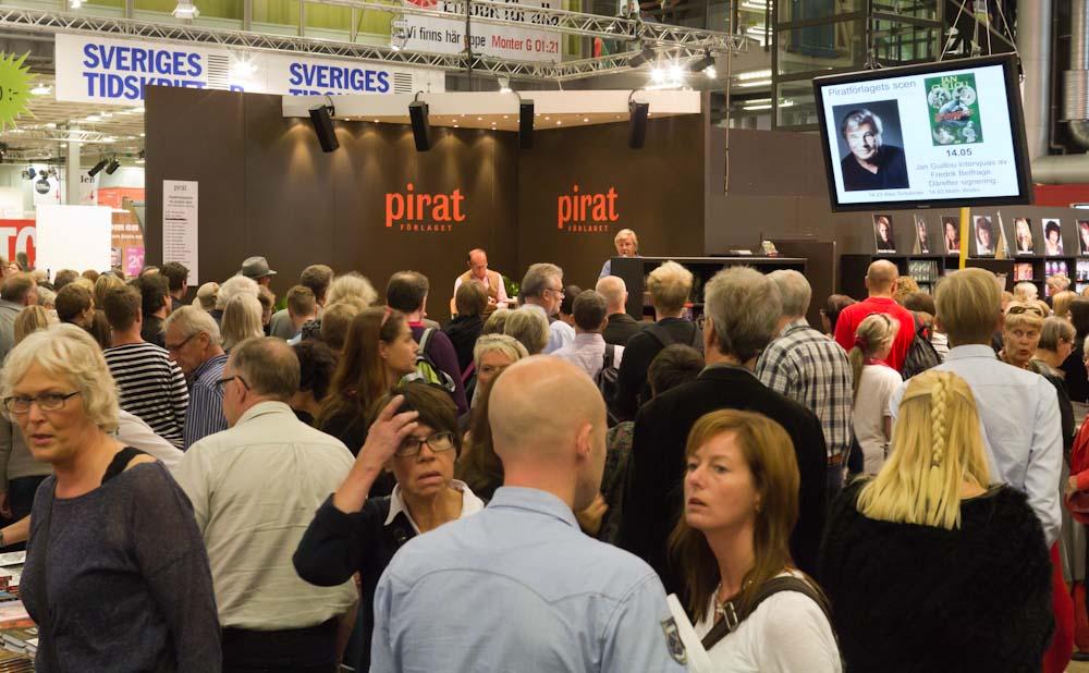 Söndag i Piratförlagets monter. Det är trångt, mycket trångt. Men så var det också totalt 100 000 besökare på bokmässan (som fick dela på 14 cykelställ).