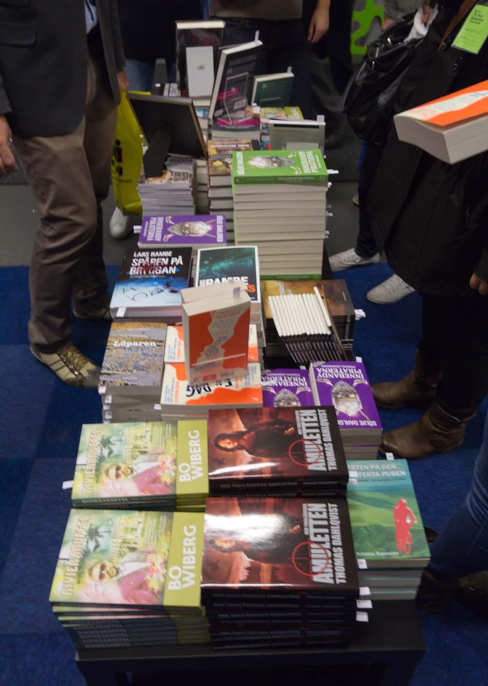 Efter två och ett halvt blogginlägg havererade min plan att blogga kontinuerligt från bokmässan. Jag har några halvskrivna inlägg som jag kanske får klart endera dagen (eller slänger då de blivit obsoleta). Ska man vara petig lyckades jag igår tacka alla som kom samt gnälla lite över mattekunskaperna hos stadsplanerarna, men jag har massor av bilder och intryck kvar att berätta om. Ska dra några av höjdpunkterna på bokmässan (sett ur mitt perspektiv).