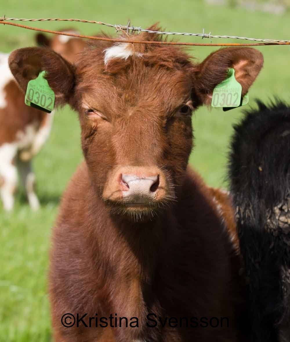 Ja det är en bild av en ko (eller fjolårskalv/ungdjur). Men kolla ansiktsuttrycket. Det ser ut som den säger ”Vad är du för konstig typ som fotar kor när det finns vågor att tämja?” En befogad fråga! Men jag försvarar mig med att det var mycket vackert att se i omgivningarna!